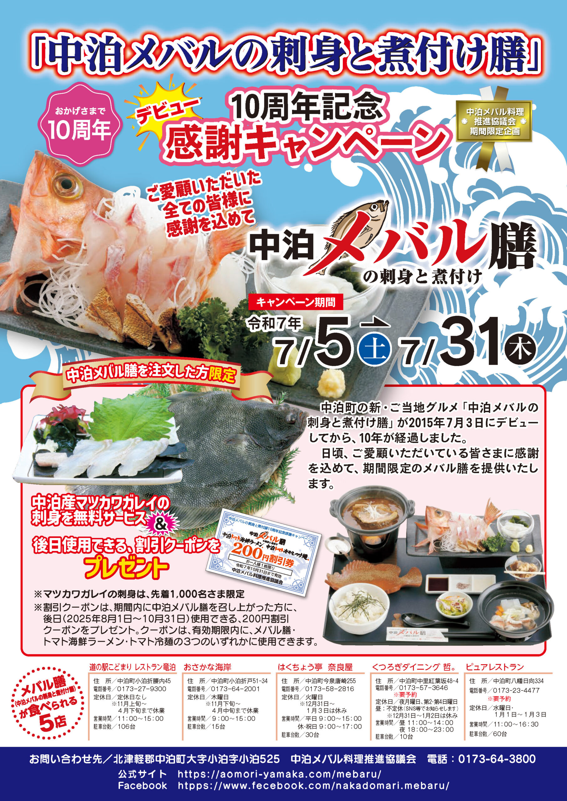 2015年7月3日にデビューした、中泊メバル膳は、この度、10周年を迎えました。