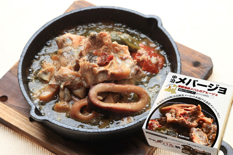 「中泊メバッツァ」は、中泊産のメバルを使った「アクアパッツァの缶詰版」。