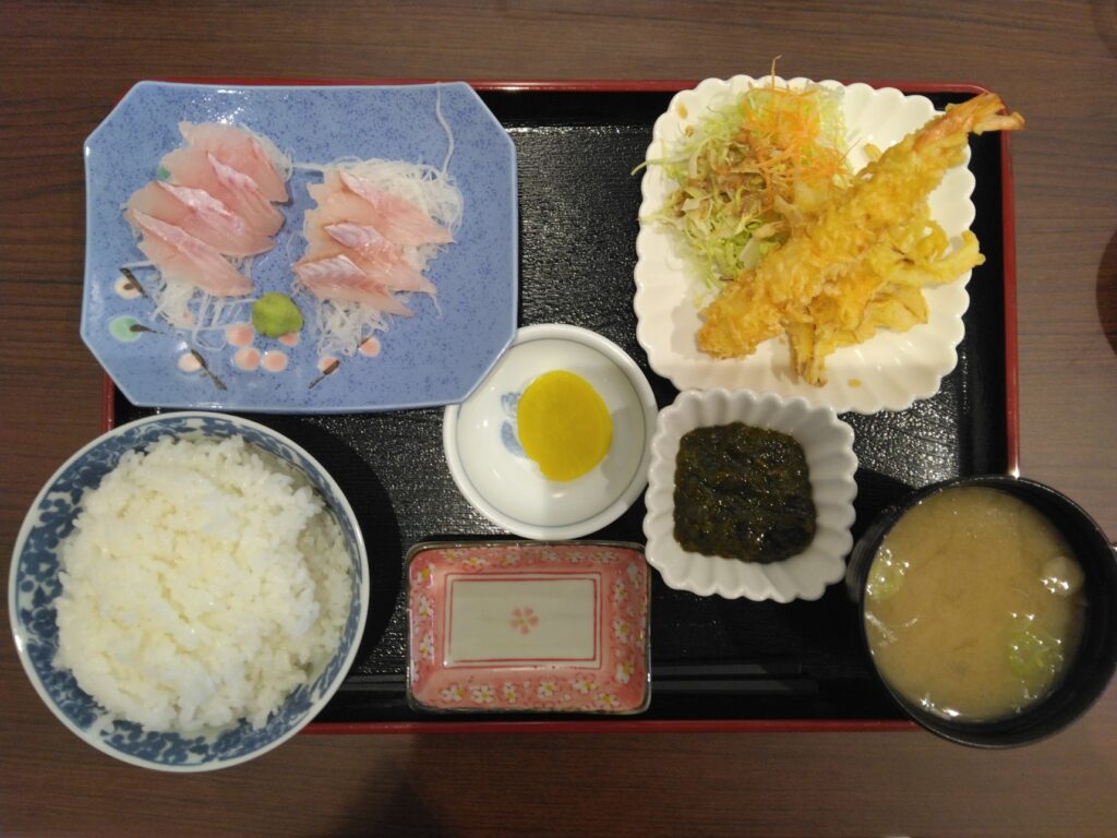 湯らゆら食堂の看板メニューは、メバル膳。中泊名産のメバルをお刺身と煮付けにした膳の定食です。